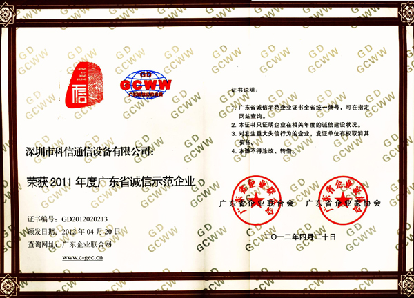 2011年度广东省诚信示范企业 发布时间: 2017-07-07 09:57:42 发布网站: 中国水处理招标网