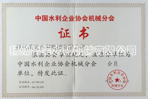 产品名称: 中国水利企业协会机械分会证书 |