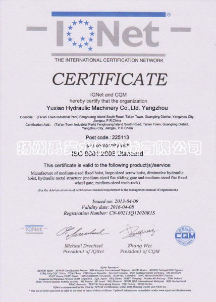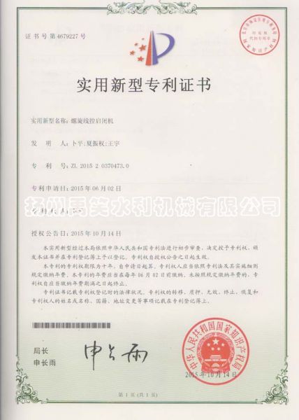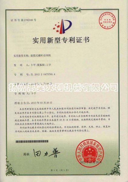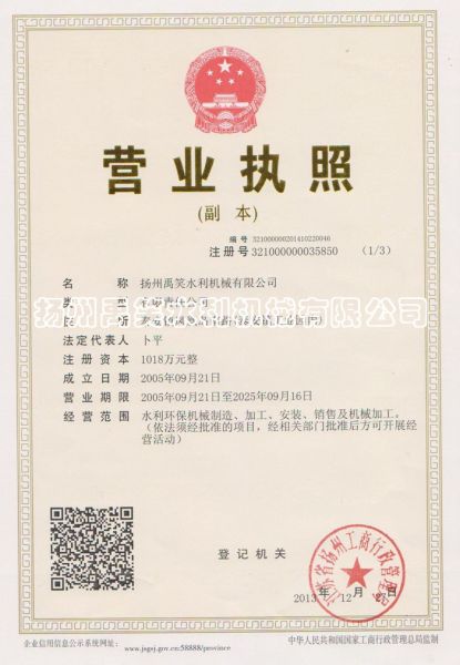 | 持证单位: 扬州禹笑水利机械有限公司 |