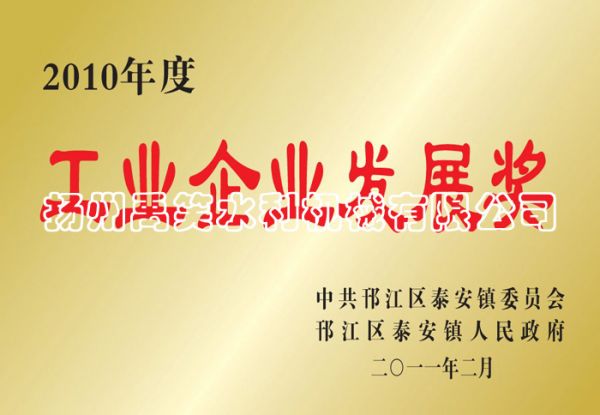 资质名称: 工业企业发展奖 |