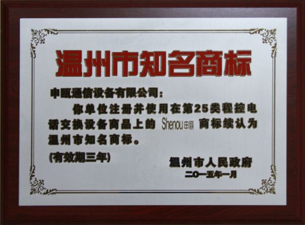 2015年 温州市知名商标 发布时间: 2017-07-17 15:30:02 发布网站: 中国水处理招标网