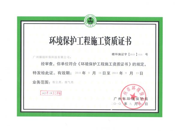 环境保护工程施工资质证书 发布时间: 2017-07-19 11:40:42 发布网站: 中国水处理招标网