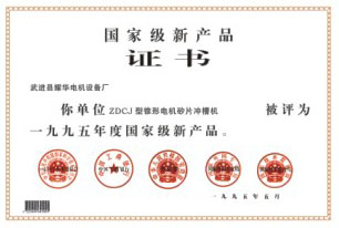 国家级新产品证书