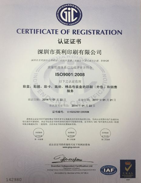 产品名称: 英利印刷ISO9001:2008中文版证书 |