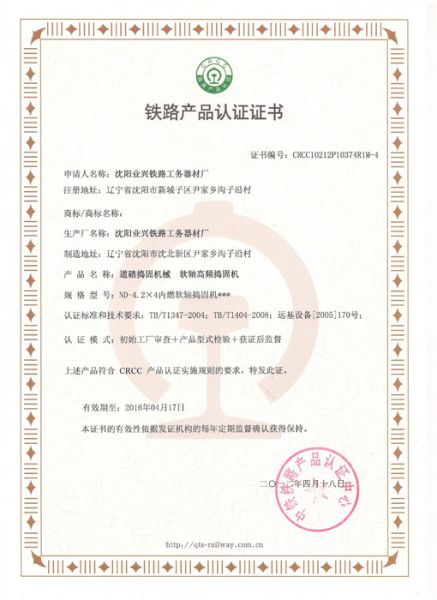 铁路产品认证证书3 发布时间: 2017-08-08 14:49:02 发布网站: 中国水处理招标网