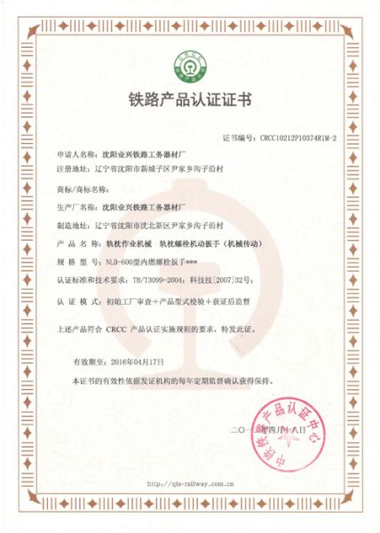 铁路产品认证证书4 发布时间: 2017-08-08 14:53:44 发布网站: 中国水处理招标网