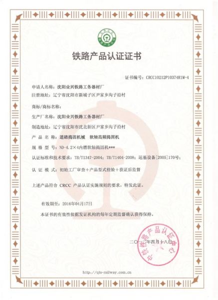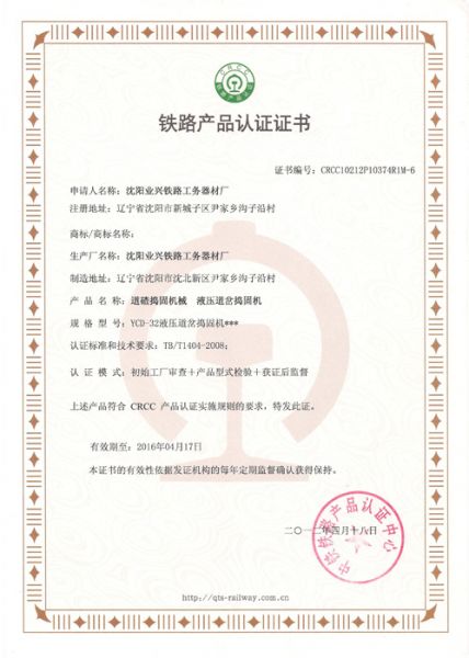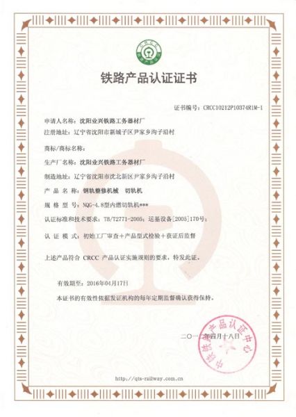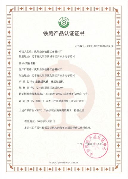 | 持证单位: 沈阳业兴铁路工务器材 |